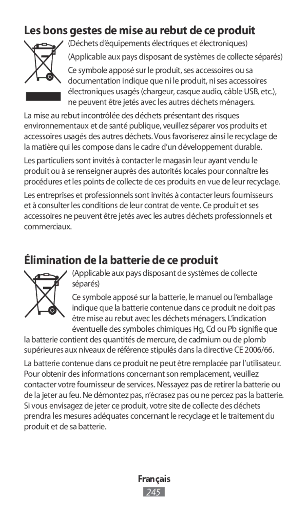 Correct disposal of batteries in this product