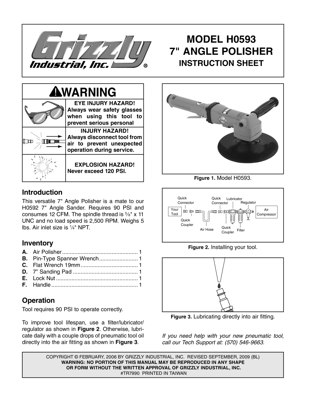 Copyright © FEbruary, 2006 By Grizzly Industrial, Inc. revised september, 2009 (BL)