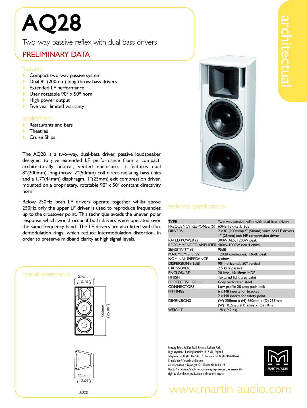 Due to Martin Audio’s policy of continuing improvement, we reserve the right to alter these specifications without prior notice.